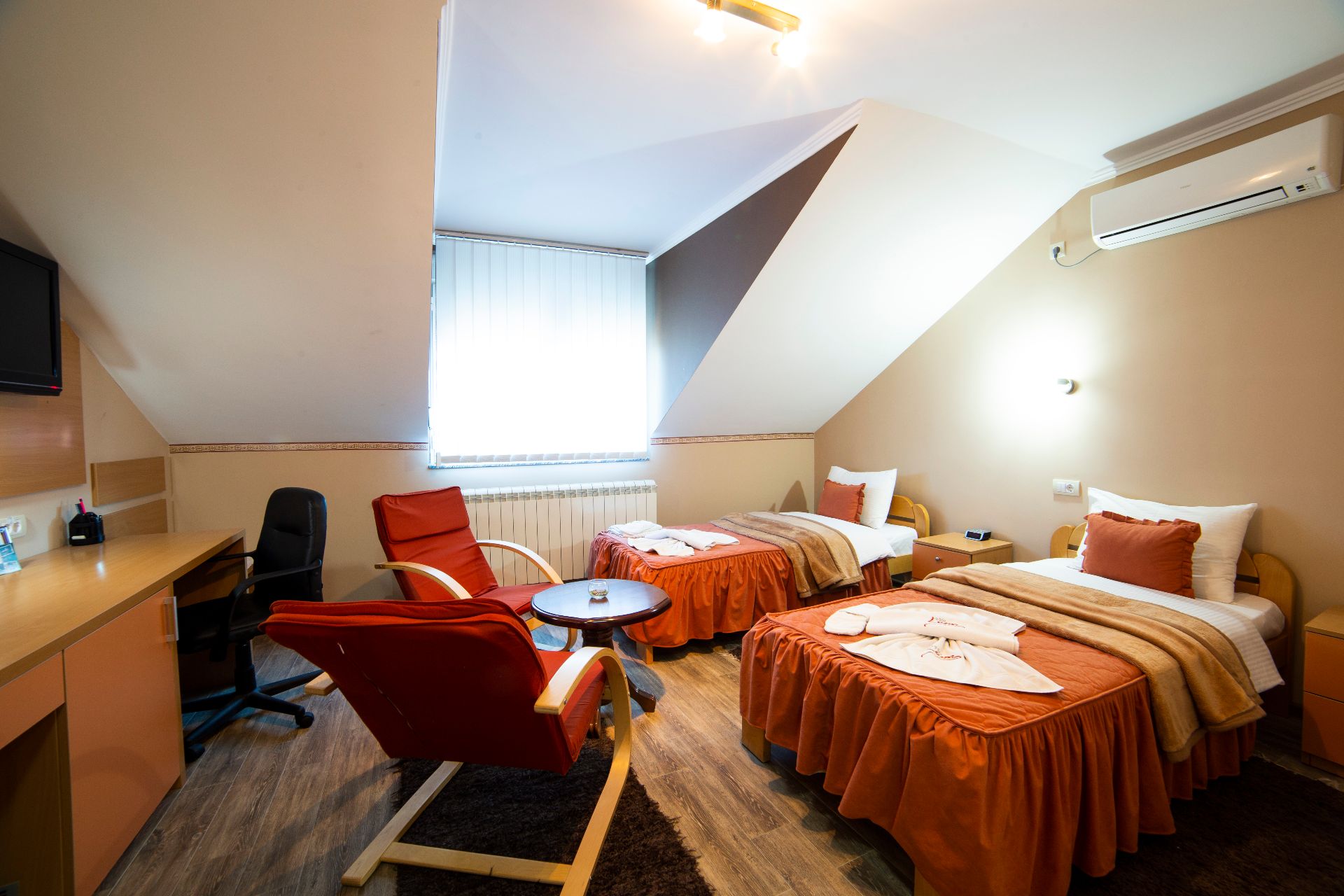 Savremeno dizajnirane sobe sa francuskim ili dva odvojena ležaja za dve osobe, uređene tako da pružaju maksimalnu udobnost, opremljene po posebnim standardima predviđenim za dodeljenu kategoriju.