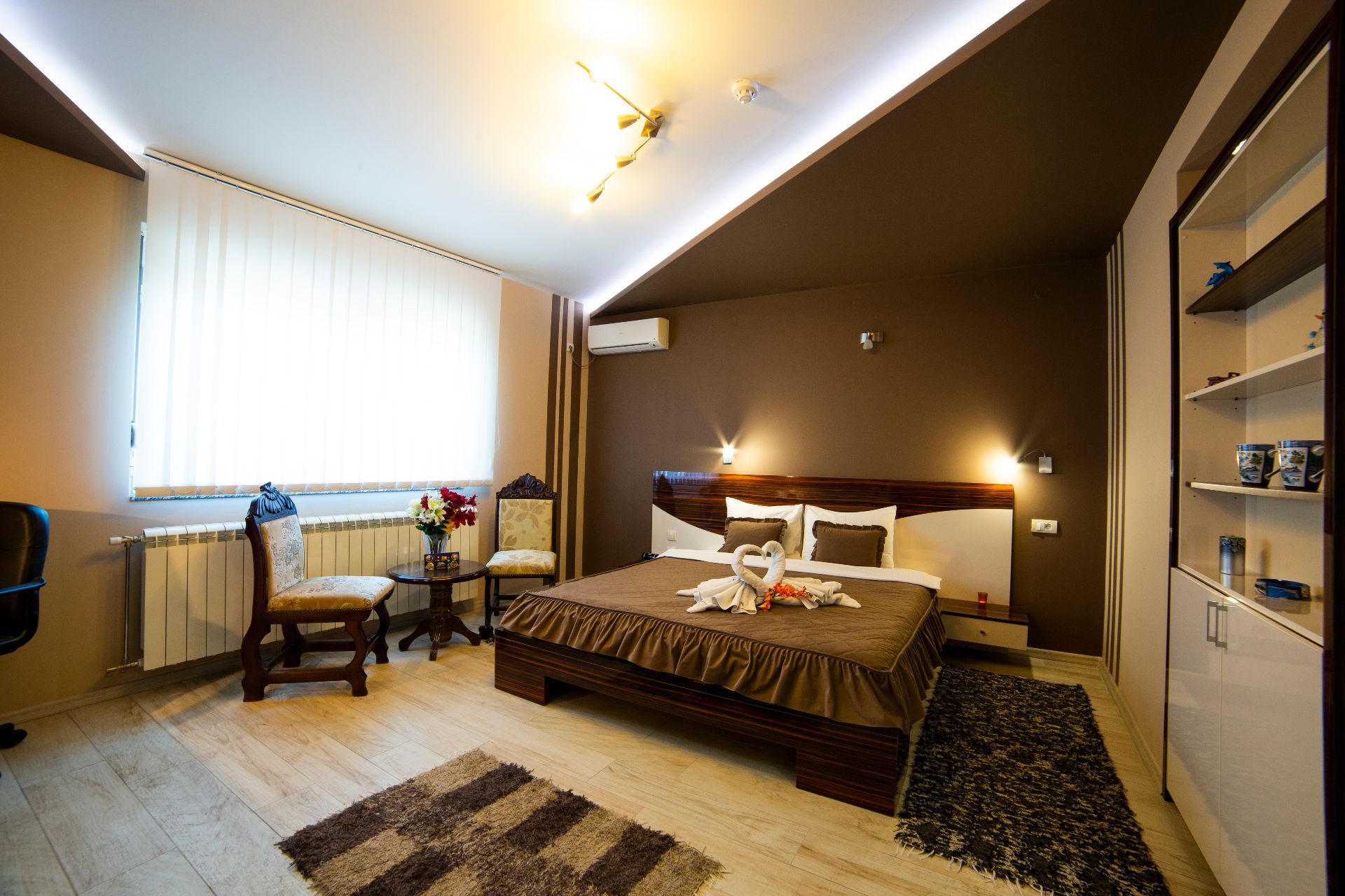 Posebno luksuzno opremljene sobe sa kingsize francuskim krevetom, moderno uređene za odmor i relaksaciju, u pojedinim superior sobama nalazi se i fitnes sprava za rekreativno vežbanje.